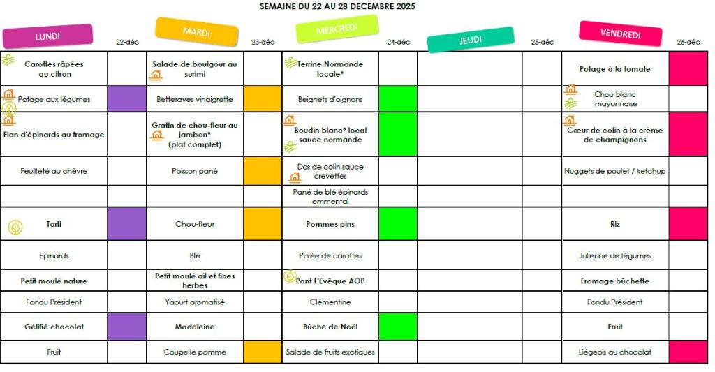 Les menus du 22 au 26 décembre 2025